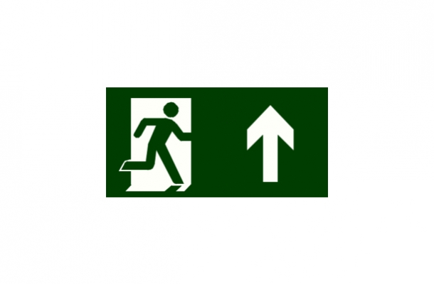 PLACA INDICAÇÃO DE UMA SAÍDA DE EMERGÊNCIA A SER AFIXADA ACIMA DA PORTA EM PVC