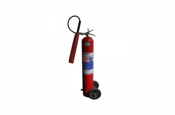 Extintor Sobre Rodas com 10 kg de Dióxido de Carbono (CO2). Fabricado a partir de tubo de aço carbono sem costura SAE 1541 - médio Manganês, tratados termicamente por Normalização.